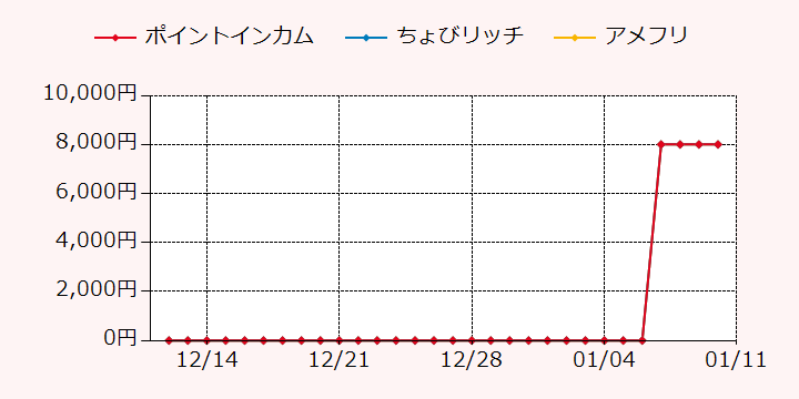 2026年1月9日に「マネークリア」でもらえるポイントサイトの報酬最高額は、ポイントインカム経由で8,000円です。その他、経由することでポイントを多くもらえるポイントサイトは、ちょびリッチ、アメフリです。