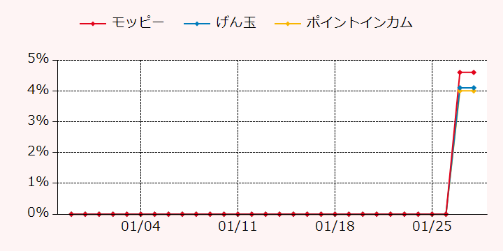 2026年1月27日に「Jackery(ジャクリ)」でもらえるポイントサイトの報酬最高額は、モッピー経由で4.6%です。その他、経由することでポイントを多くもらえるポイントサイトは、げん玉、ポイントインカムです。