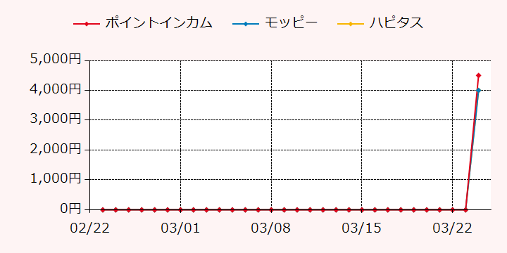2026年3月24日に「外為どっとコム らくらくFX積立」でもらえるポイントサイトの報酬最高額は、ポイントインカム経由で4,500円です。その他、経由することでポイントを多くもらえるポイントサイトは、モッピー、ハピタスです。