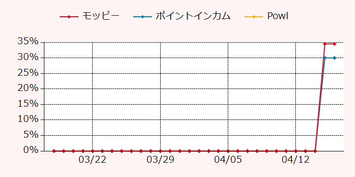 2026年4月16日に「nosh(ナッシュ)定率報酬」でもらえるポイントサイトの報酬最高額は、モッピー経由で34.5%です。その他、経由することでポイントを多くもらえるポイントサイトは、ポイントインカム、Powlです。