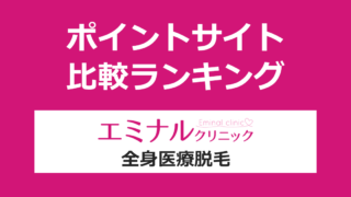 「メンズエミナル 医療メンズ脱毛」をポイントサイト経由で利用したときにもらえるポイント数を毎日調査。ランキングとポイント推移グラフで比較結果を表示。いちばんお得なポイントサイトでメンズエミナル 医療メンズ脱毛を利用しよう!